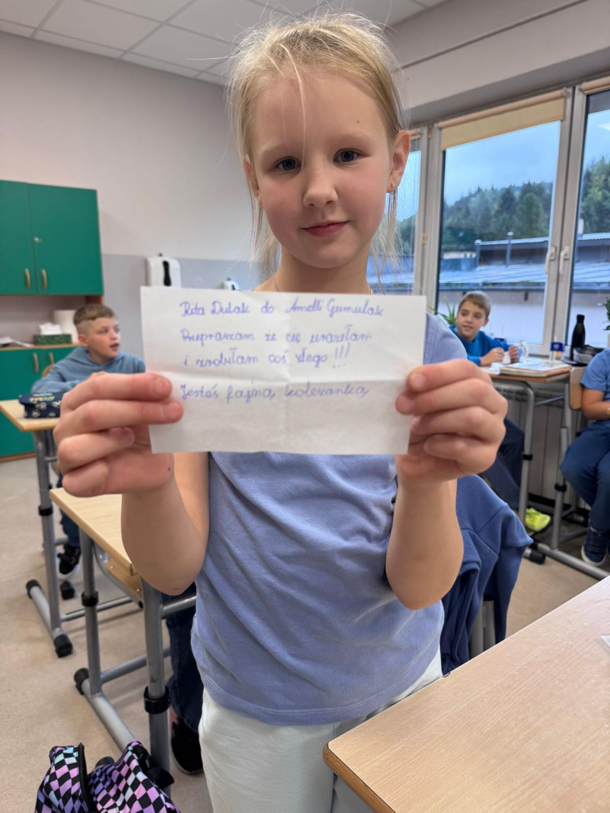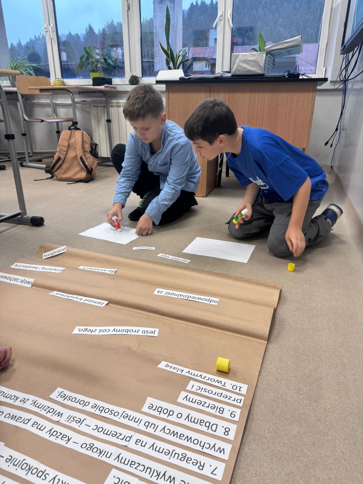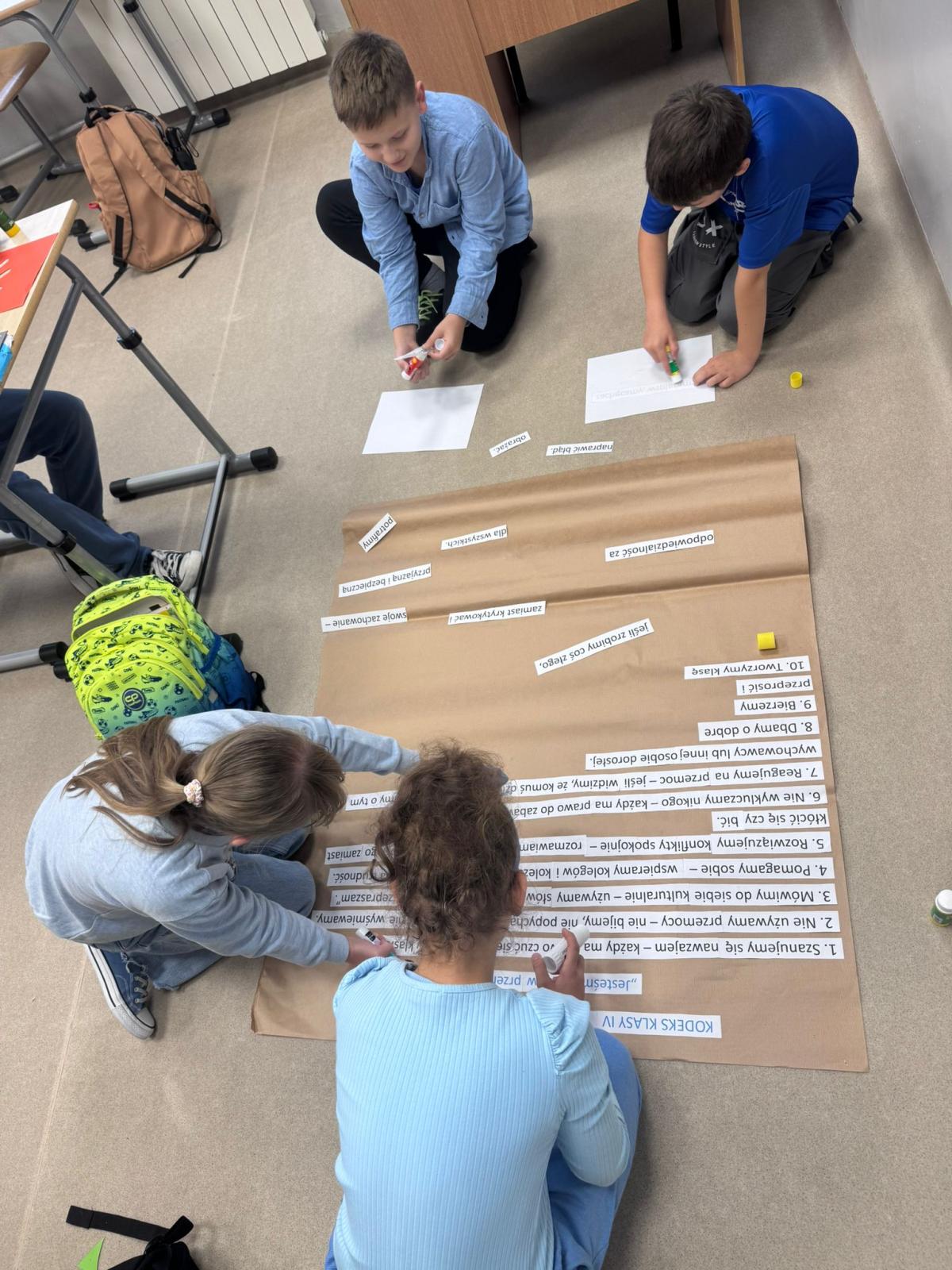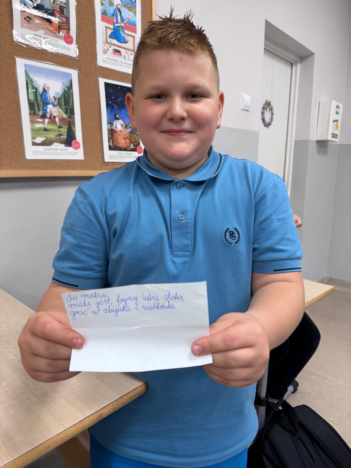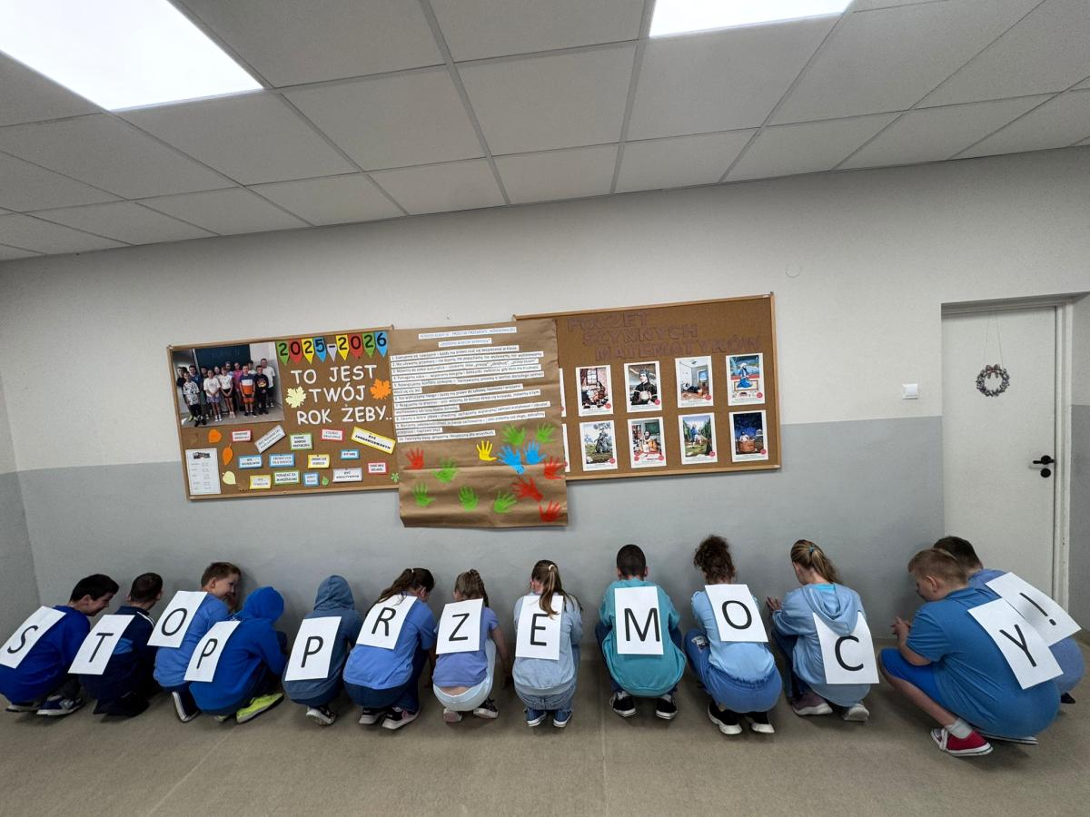 W naszej szkole odbył się Tydzień Przeciwdziałania Przemocy Rówieśniczej, w którym aktywnie uczestniczyła klasa IV. Był to czas pełen ważnych rozmów, refleksji i działań, które miały na celu uświadomienie nam, jak istotny jest wzajemny szacunek, życzliwość i umiejętność rozwiązywania konfliktów bez agresji. Jednym z działań był pomysł na „Skrzynkę przeprosin”. Każdy mógł wrzucić do niej karteczkę z przeprosinami za swoje zachowanie – drobne kłótnie, nieporozumienia czy słowa, które kogoś mogły zranić. Dzięki temu łatwiej było naprawić relacje i odbudować przyjaźnie. Kolejną inicjatywą był „Dzień Dobrego Słowa”. Okazało się, że kilka prostych zdań potrafi poprawić humor i sprawić, że dzień staje się lepszy. Nie zabrakło również działań plastycznych – uczniowie na zajęciach z wychowawcą przygotowali plakat – „Kodeks klasy IV przeciw przemocy” zachęcający do życzliwości i koleżeństwa. Całość zwieńczył „Dzień na niebiesko”. Uczniowie wraz z wychowawczynią przyszli do szkoły ubrani w niebieskie elementy garderoby – kolor, który symbolizuje solidarność w walce z przemocą i krzywdą. Dzięki tym inicjatywom klasa IV pokazała, że potrafi być wspólnotą, w której każdy czuje się ważny i bezpieczny. Tydzień Przeciwdziałania Przemocy Rówieśniczej był dla nas lekcją empatii i przypomnieniem, że dobre słowo, uśmiech, czy gest potrafią zdziałać naprawdę wiele.