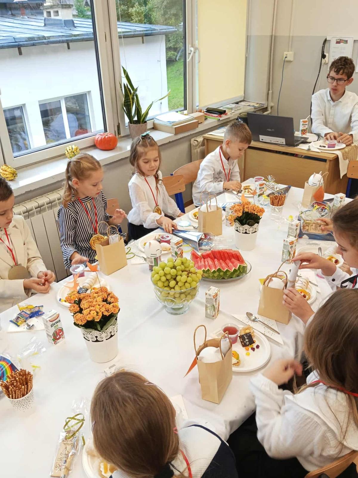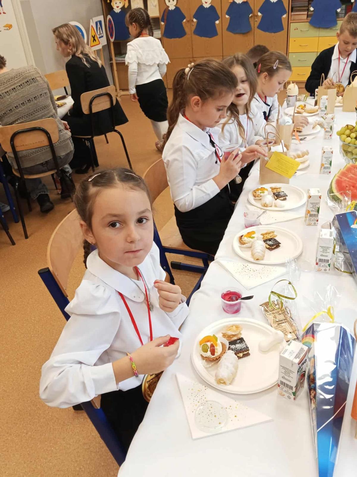 Po zakończeniu części oficjalnej uczestnicy zostali zaproszeni na słodki poczęstunek zorganizowany przez rodziców .