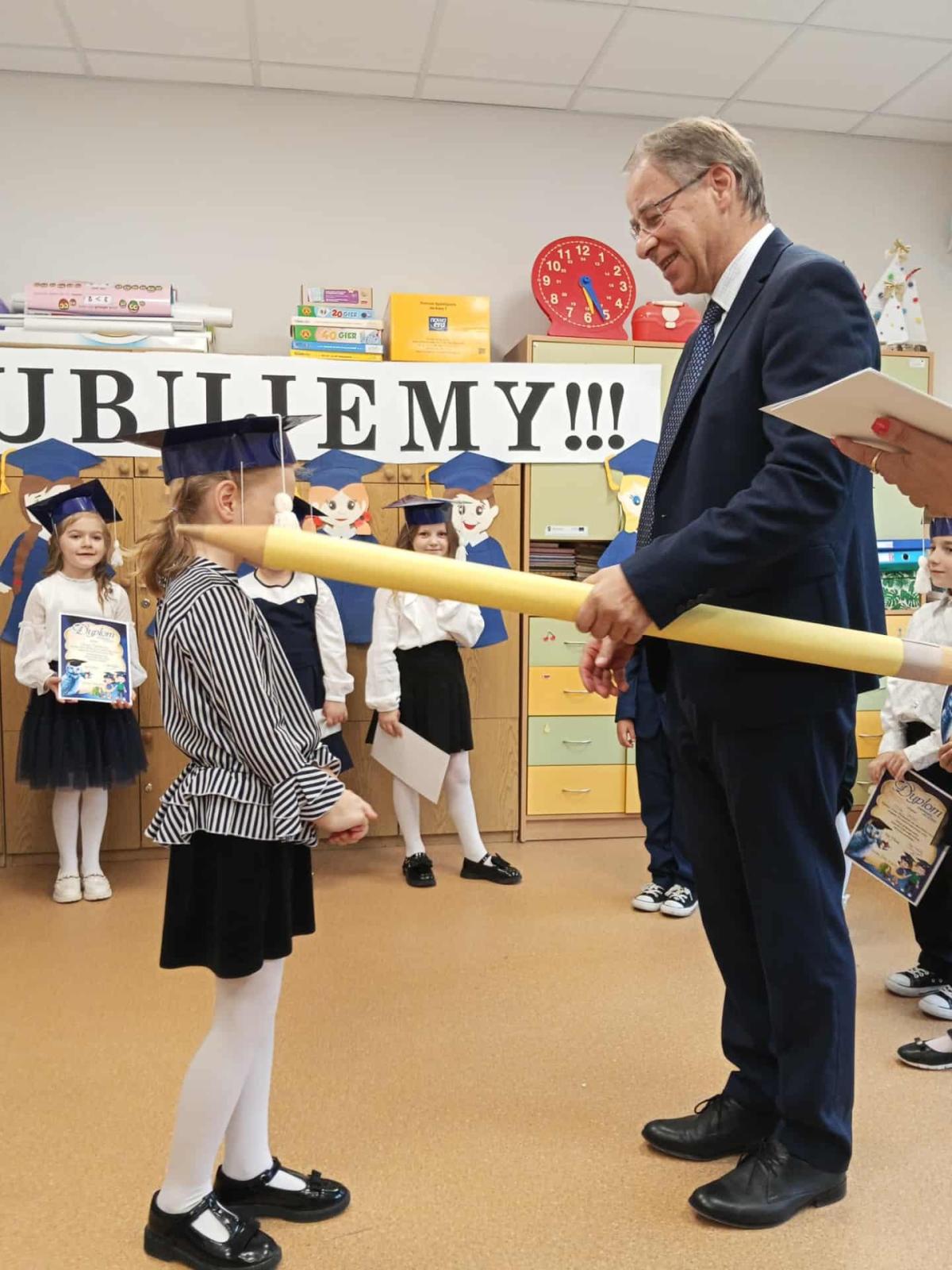 Ważnym momentem uroczystości był akt pasowania na ucznia. Kolorowym ołówkiem dokonał go pan dyrektor szkoły Marian Dobosz. Tym samym pierwszaki zostały oficjalnie włączone do społeczności uczniowskiej Szkoły Podstawowej Nr 2 w Piwnicznej - Zdroju. Wszyscy pierwszoklasiści dostali pamiątkowe medale, dyplomy oraz prezenty przygotowane przez swoich rodziców, a także wychowawców i uczniów starszych klas.