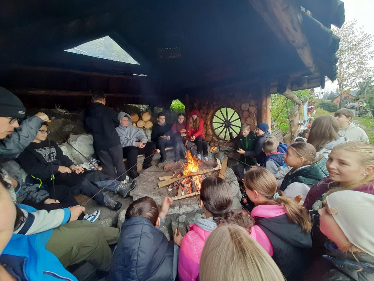 Dnia 08.10.2025r. uczniowie klas IV-VIII wraz z wychowawcami udali się na coroczną, tradycyjną, pieszą wycieczkę na Obidzę. Docelowym miejscem był ,,Wóz u Johnnego", prowadzony przez Państwa Bernadetę i Andrzeja Porębskich. Po dotarciu do celu, wszyscy piekli kiełbasy, pili ciepłą herbatę, którą częstowali gospodarze. Serdecznie dziękujemy za gościnę i mamy nadzieję, że zobaczymy się również w przyszłym roku.
