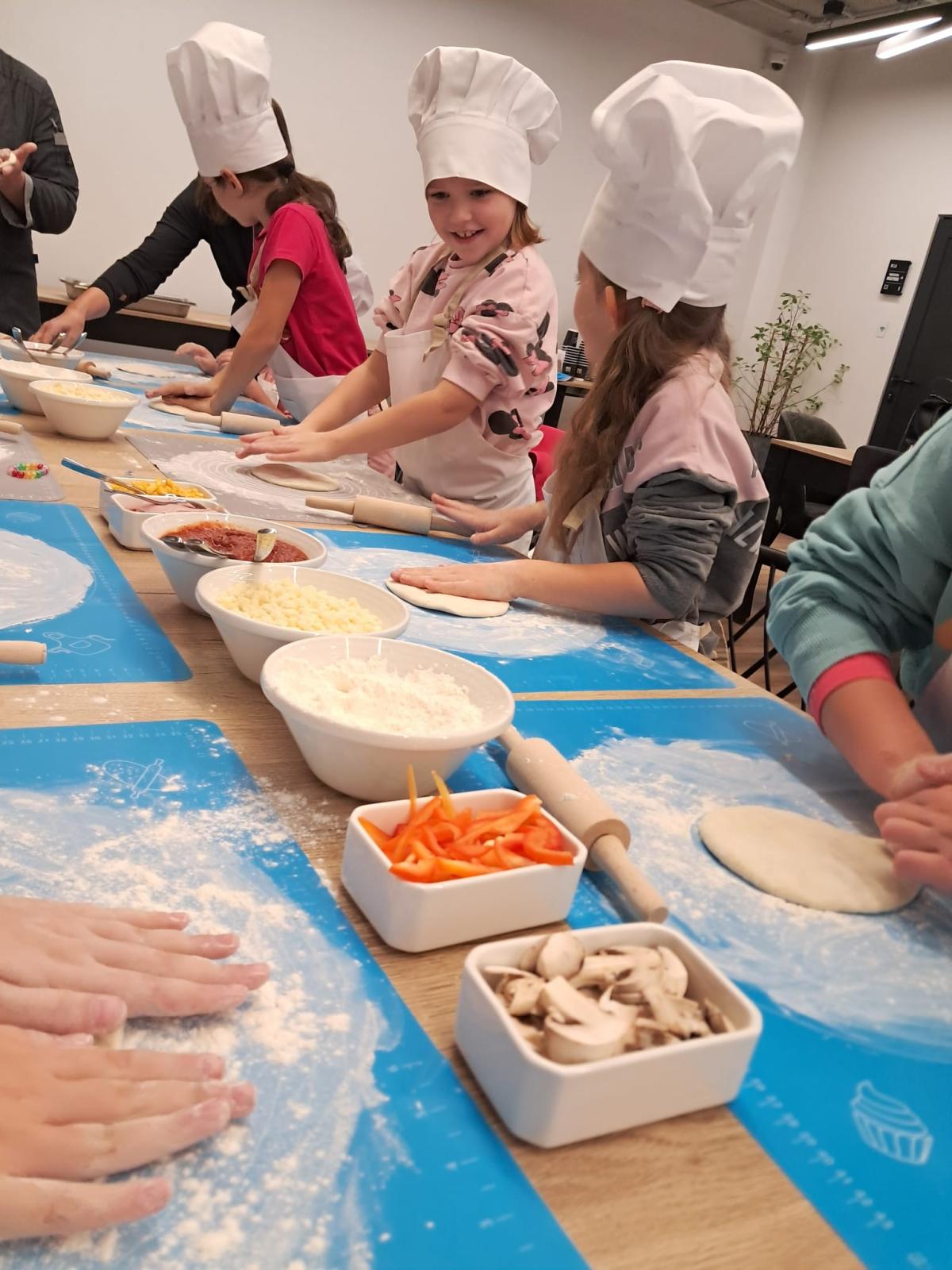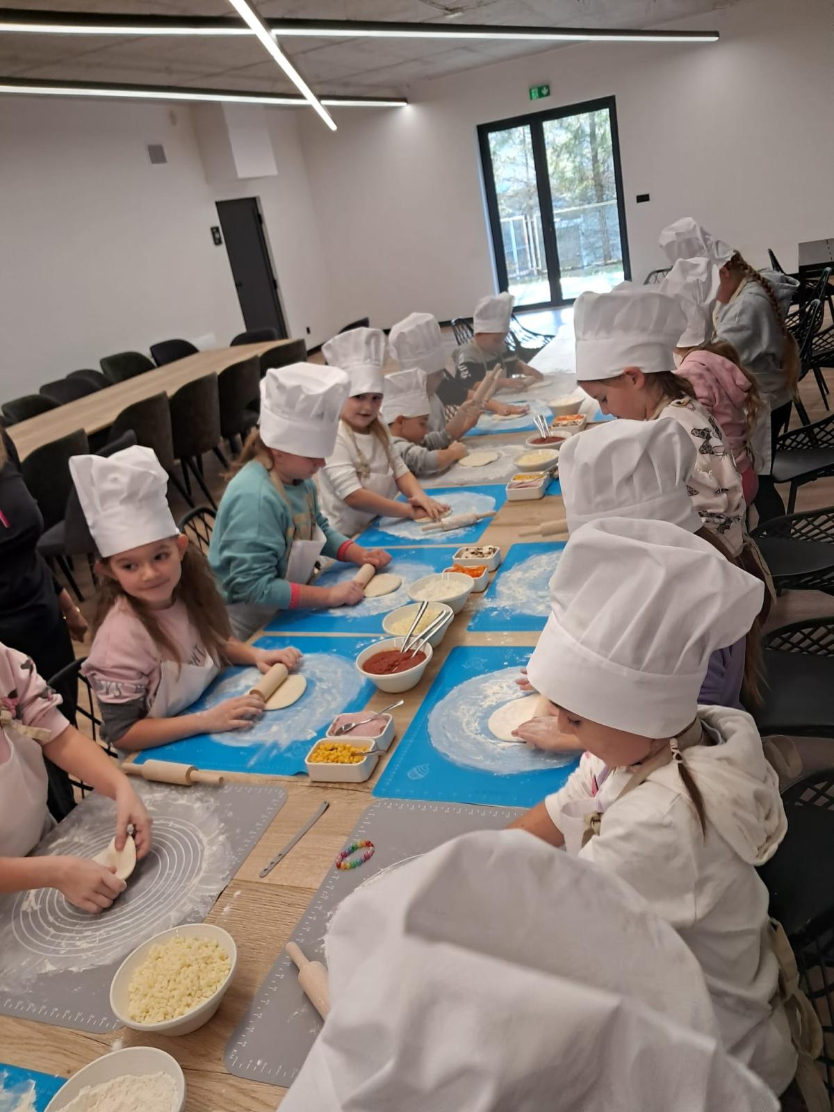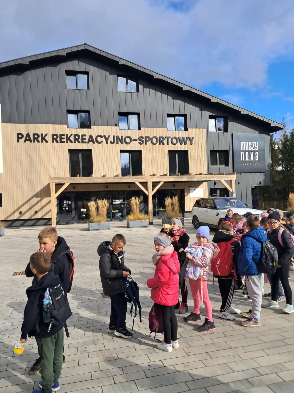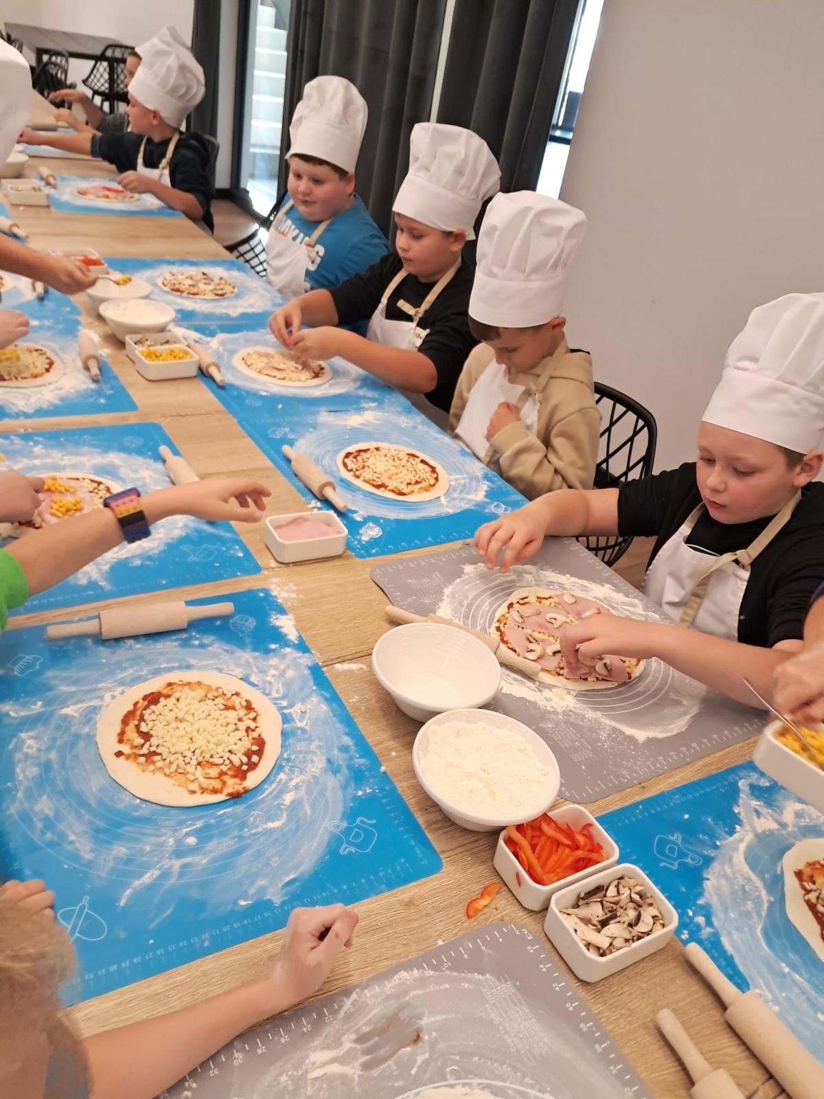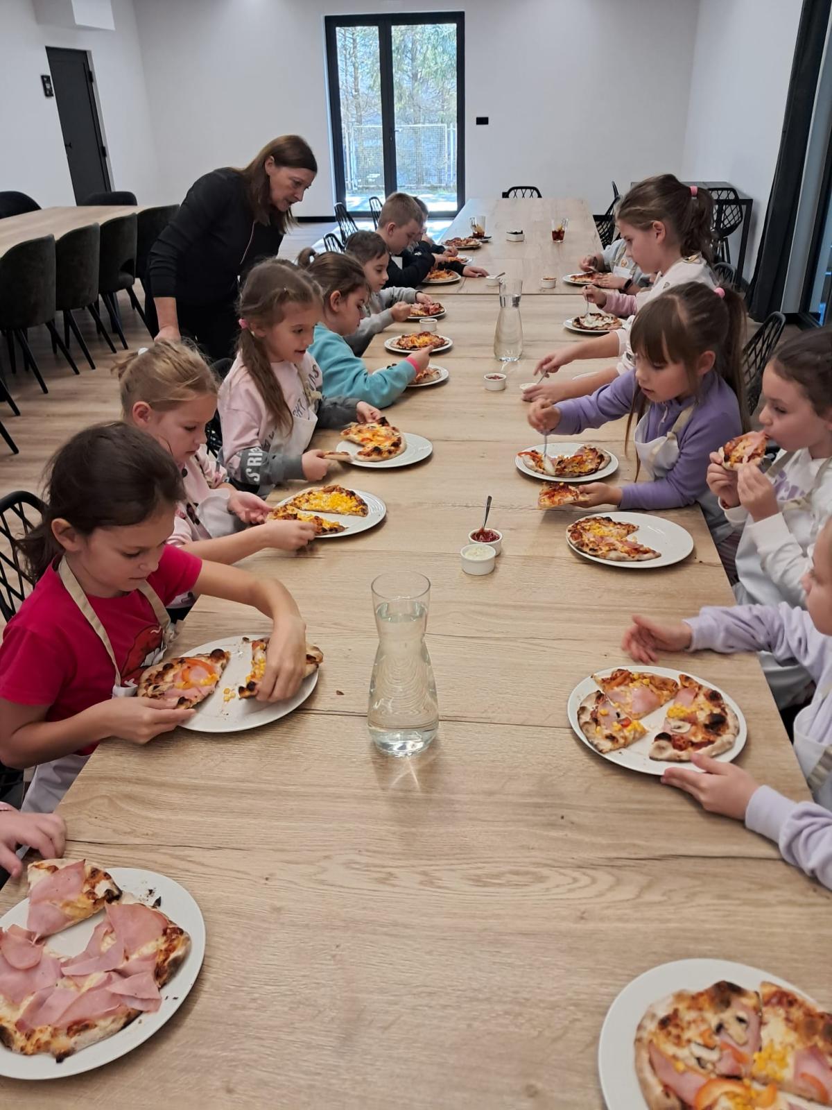 Uczniowie klas 1-3 wraz z wychowawcami wybrali się 23 października do „Muszynowa – Park Rekreacyjno-Sportowy”. Wycieczka do sali zabaw i warsztatów pizzy była połączoną aktywnością rekreacyjną i edukacyjną, podczas której dzieci skorzystały z atrakcji sali zabaw, a następnie wzięły udział w warsztatach kulinarnych. Celem było rozwijanie sprawności ruchowej, zręczności, orientacji w przestrzeni oraz nauka aktywnego i kulturalnego zachowania się, a także zapoznanie z procesem przygotowywania pizzy od podstaw. Dzieci miały okazję samodzielnie zrobić własne pizze, od wałkowania ciasta, przez dodawanie sosu i składników, aż po degustację swoich wypieków.
