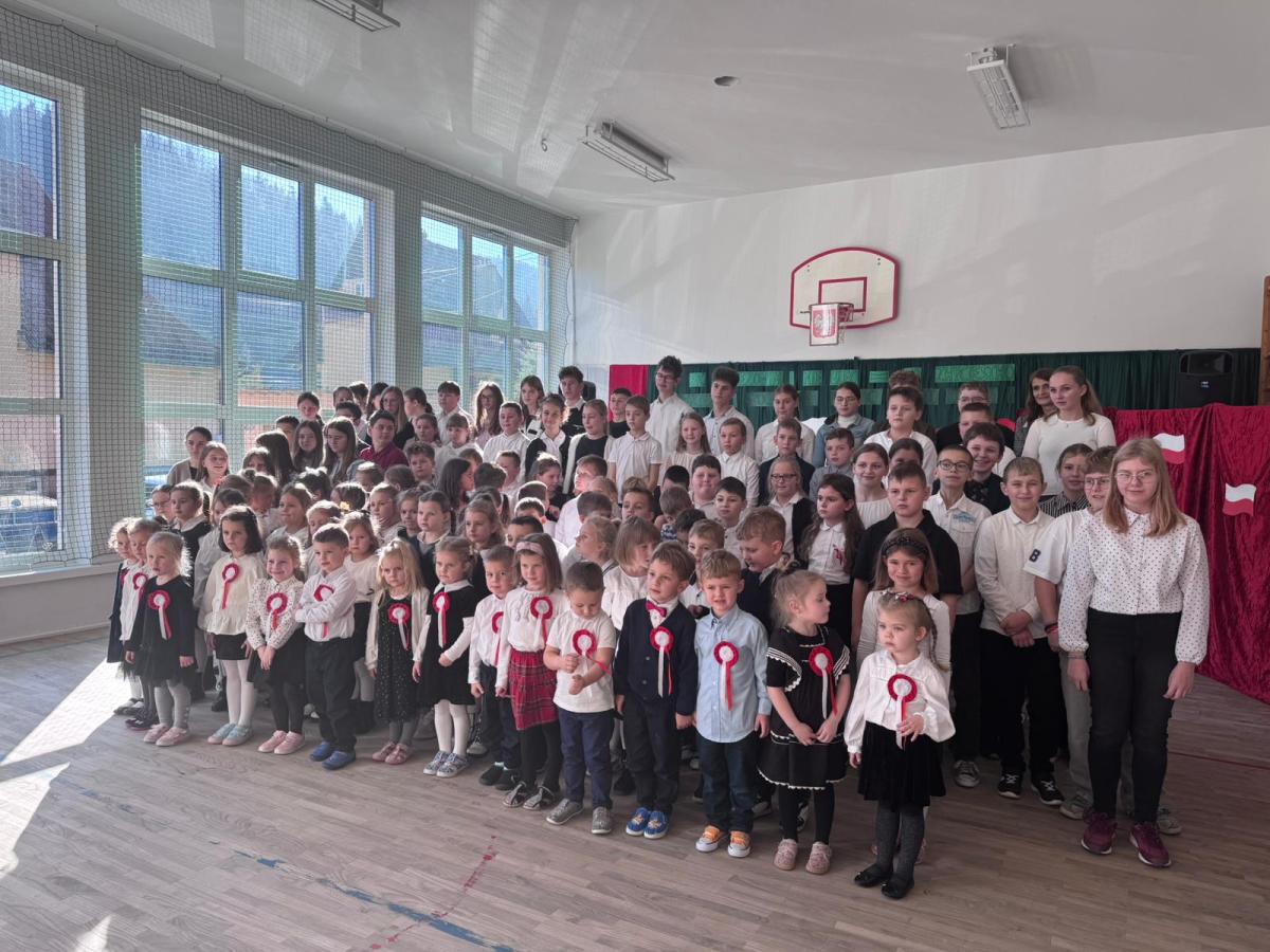 W piątek, 7 listopada 2025 roku, nasza szkoła po raz kolejny włączyła się w ogólnopolską akcję „Szkoła do hymnu”, organizowaną przez Ministerstwo Edukacji Narodowej z okazji Narodowego Święta Niepodległości. Celem inicjatywy jest wspólne odśpiewanie „Mazurka Dąbrowskiego” przez uczniów i nauczycieli w całej Polsce, jako symbol jedności, patriotyzmu i szacunku do historii naszego kraju. Punktualnie o godzinie 11:11 cała społeczność szkolna zebrała się w sali gimnastycznej, by wspólnie zaśpiewać hymn państwowy. Uczniowie i nauczyciele wystąpili w strojach galowych, a wielu z nich przypięło biało-czerwone kotyliony, podkreślające charakter uroczystości. Udział w akcji „Szkoła do hymnu” był dla nas nie tylko formą upamiętnienia ważnego wydarzenia historycznego, ale także okazją do wspólnego przeżywania radości z faktu, że możemy żyć w wolnej i niepodległej Polsce. Takie inicjatywy uczą młode pokolenie szacunku do symboli narodowych, rozwijają postawy patriotyczne i umacniają więź z ojczyzną. Jesteśmy dumni, że nasza szkoła mogła wziąć udział w tej pięknej, ogólnopolskiej inicjatywie, łączącej uczniów i nauczycieli w całym kraju pod wspólnym dźwiękiem hymnu narodowego.