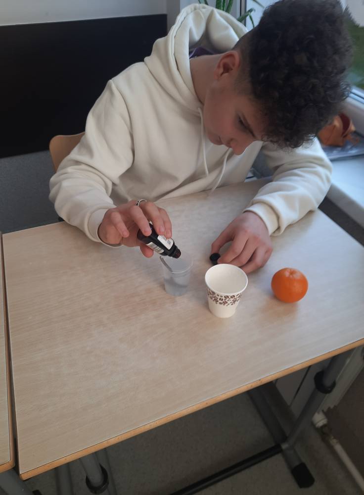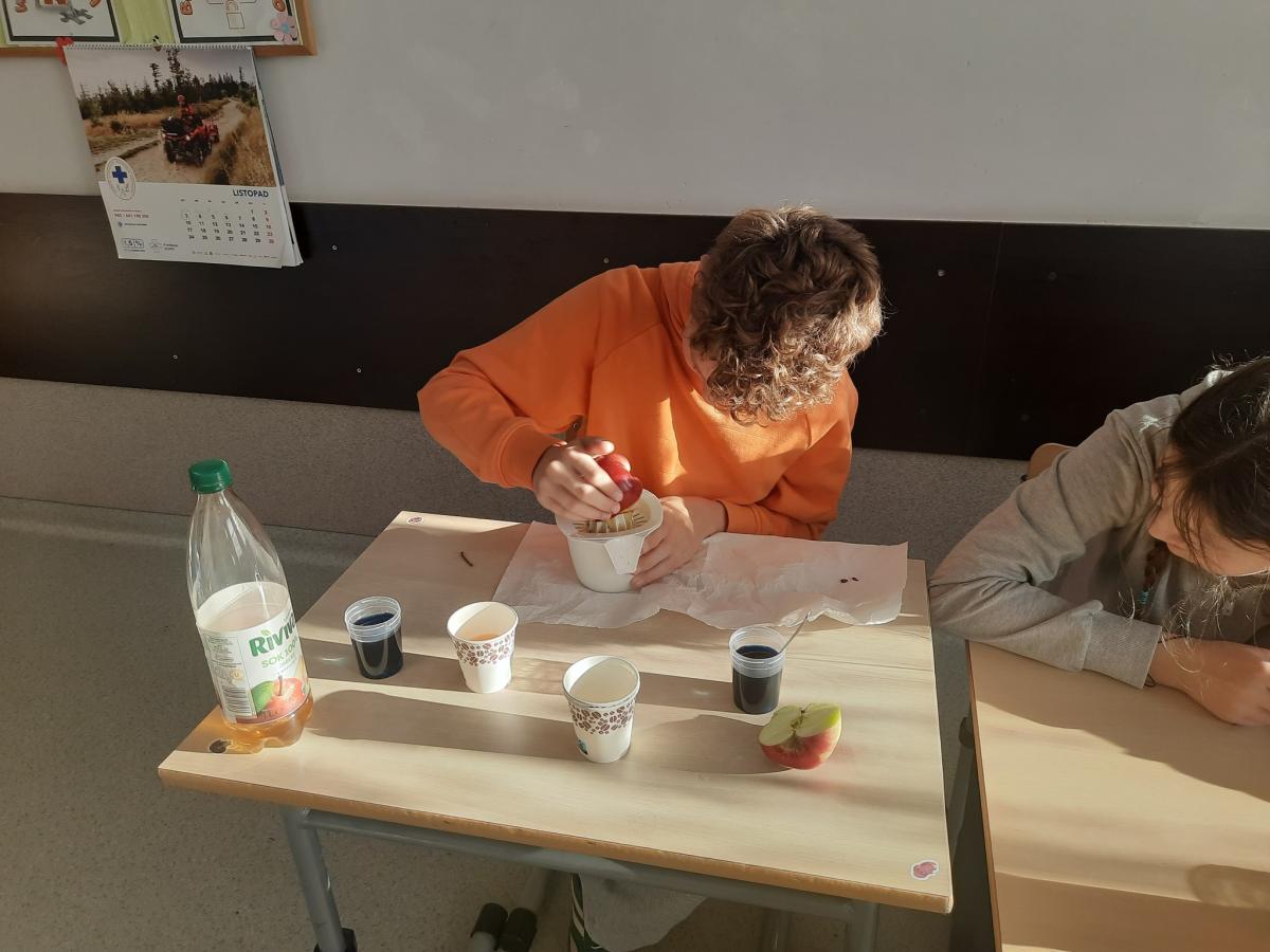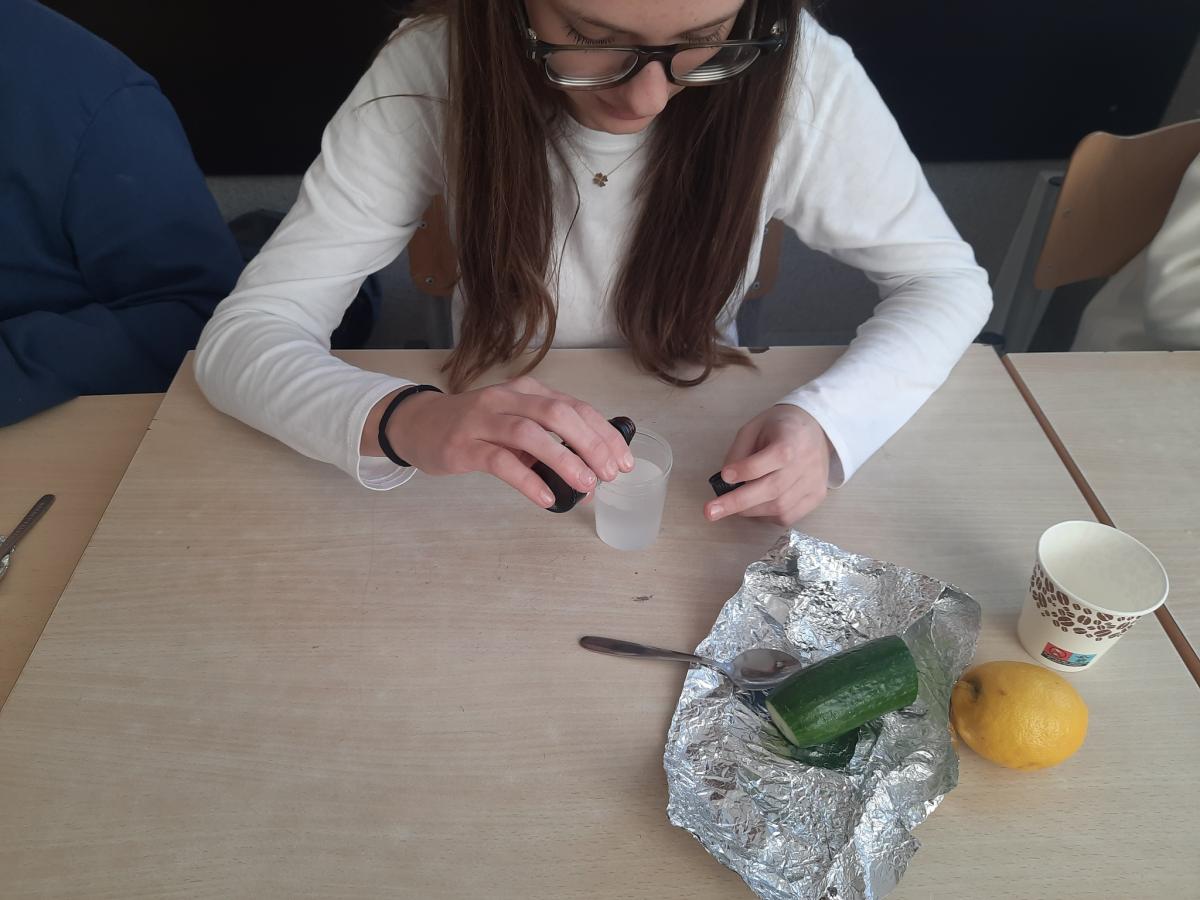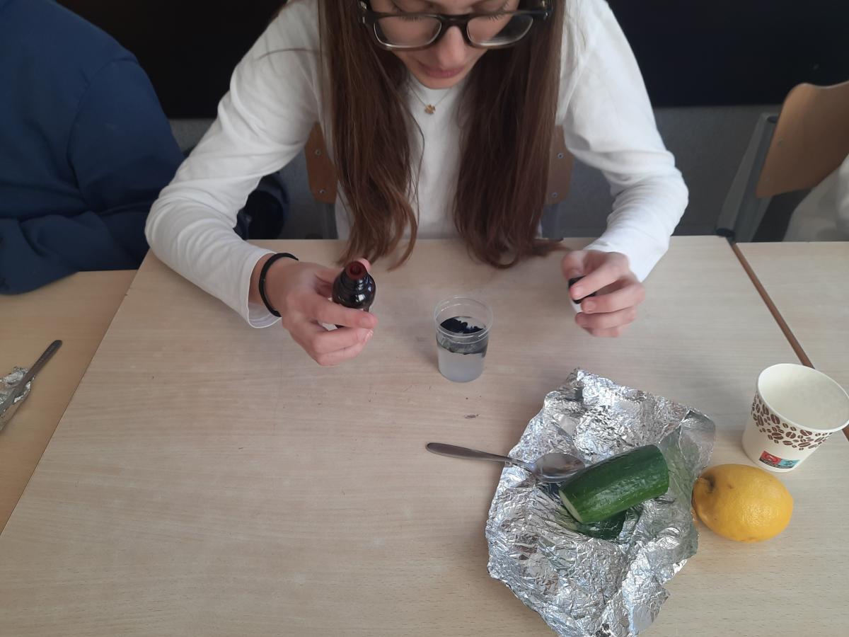 Drukuj Powrót do poprzedniej strony Witamina C - badanie zawartości 06.11.2025 18:35 Treść WITAMINA C Na lekcji biologii, uczniowie klasy VII mieli za zadanie wykonać doświadczenie, które miało na celu zbadać zawartość witaminy C w sokach z owoców i warzyw A.J.