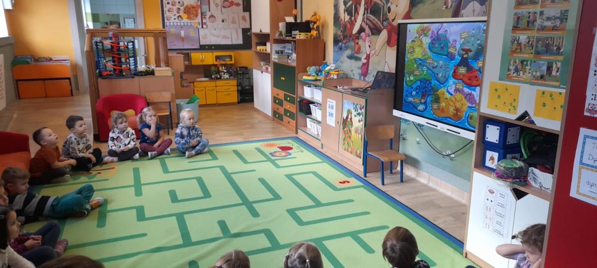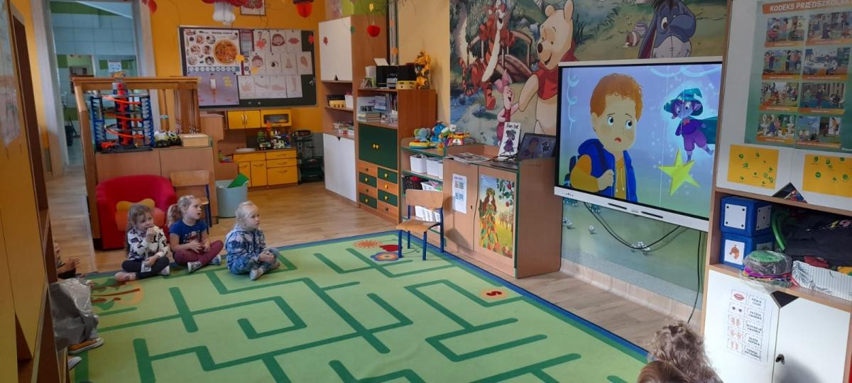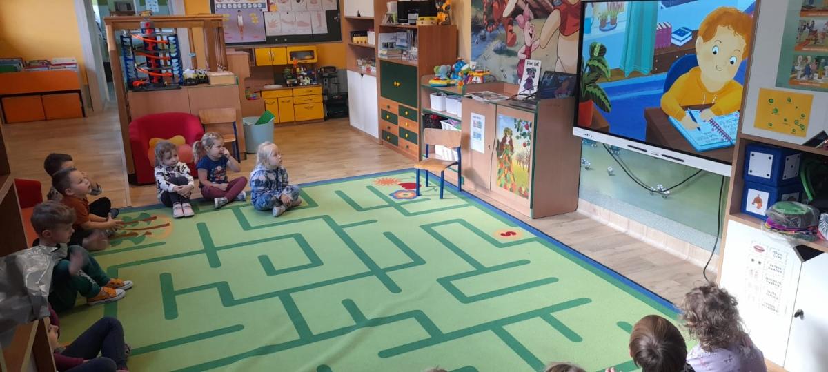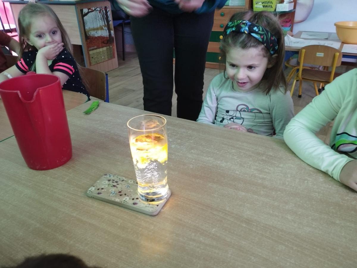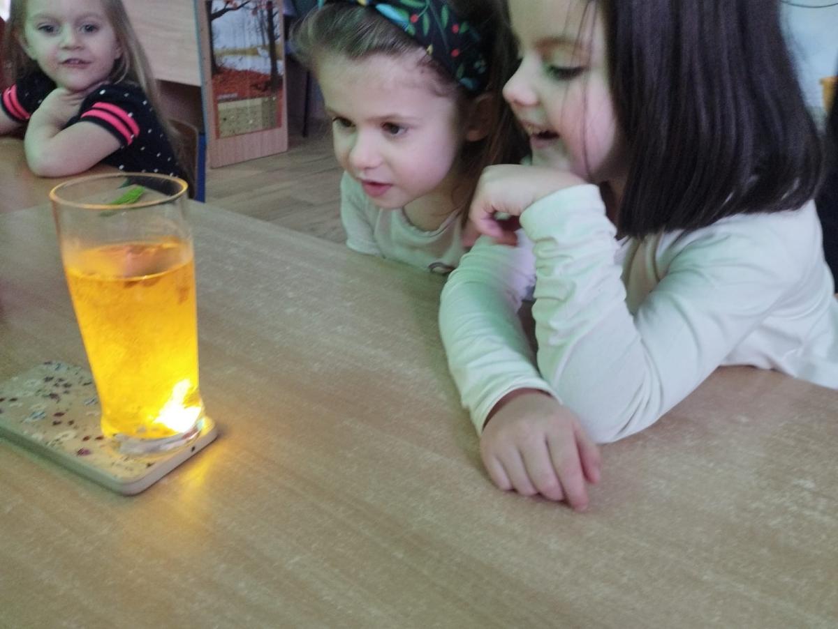 Przedszkolaki oglądały animację do bajki, pt. ,,Pan Łał z wyspy zdziwienia" oraz miały okazję zobaczyć ekperymenty: