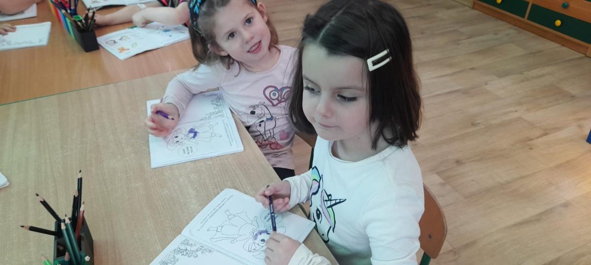 Na zakończenie dzieci kolorowały sylwetę Pana ,,Łał"w swojej książeczce, którą następnie zabrały do domu, aby uzupełnić ją z rodzicami.