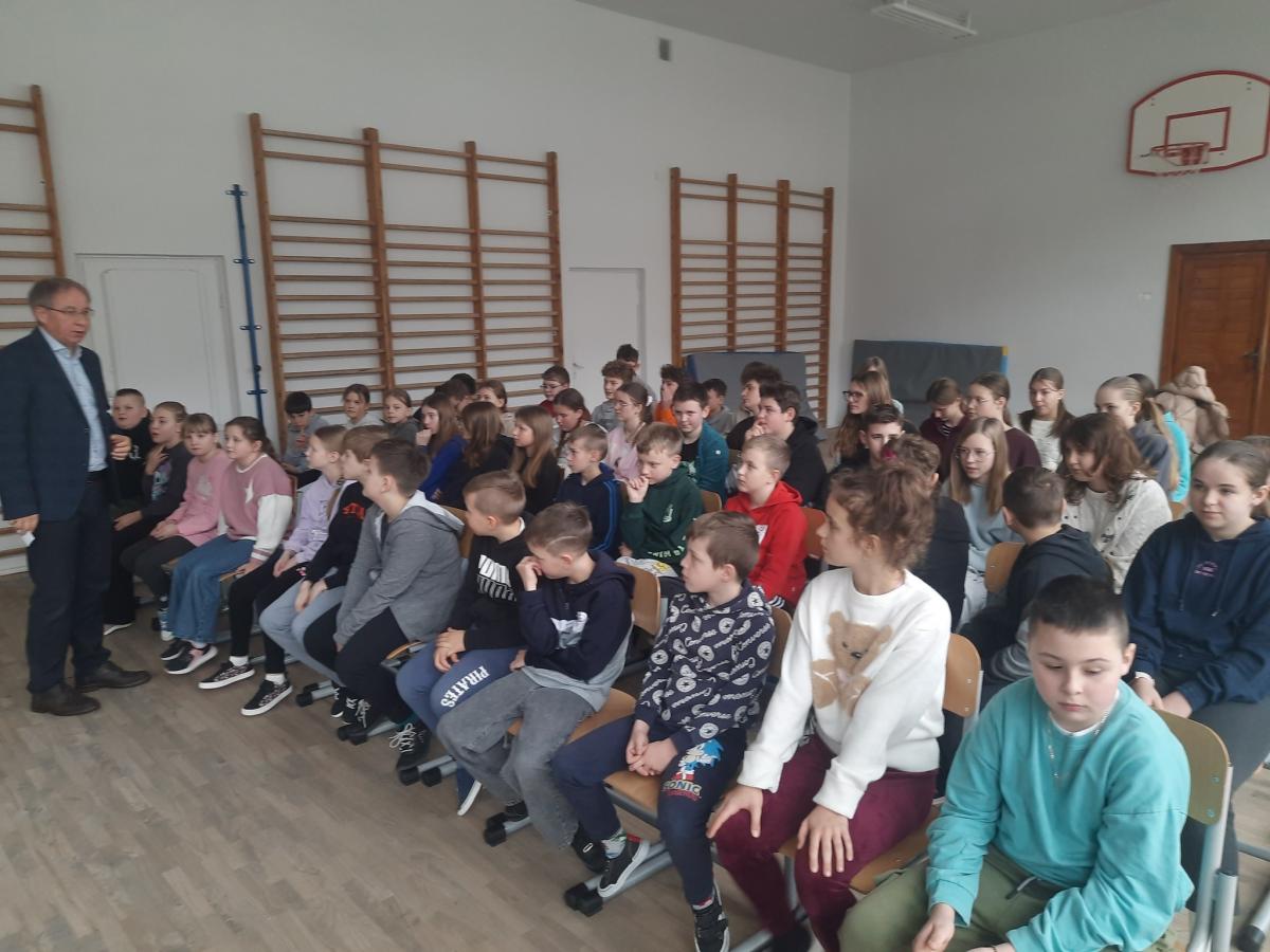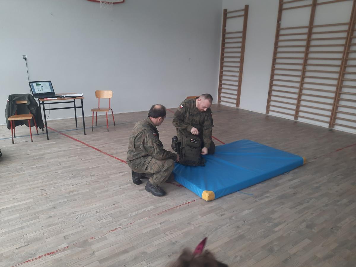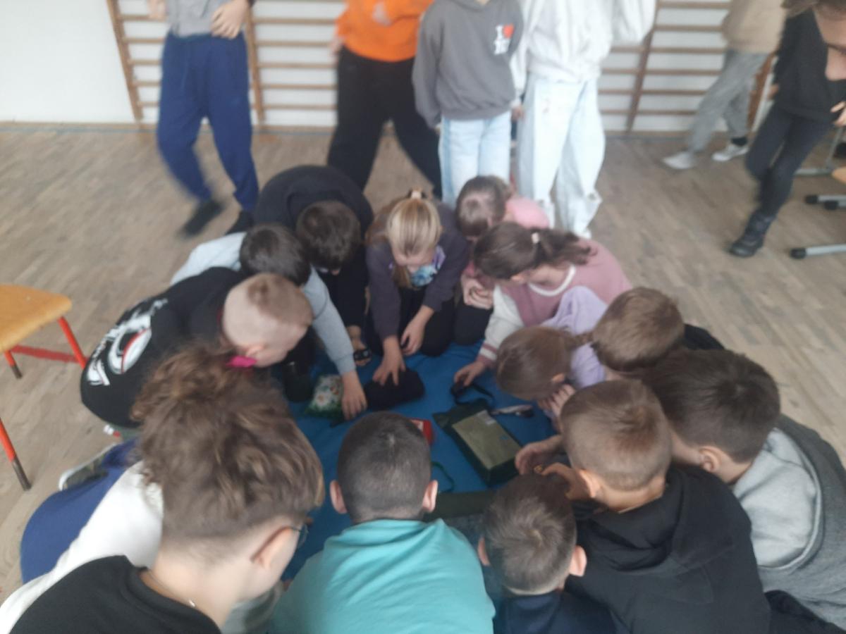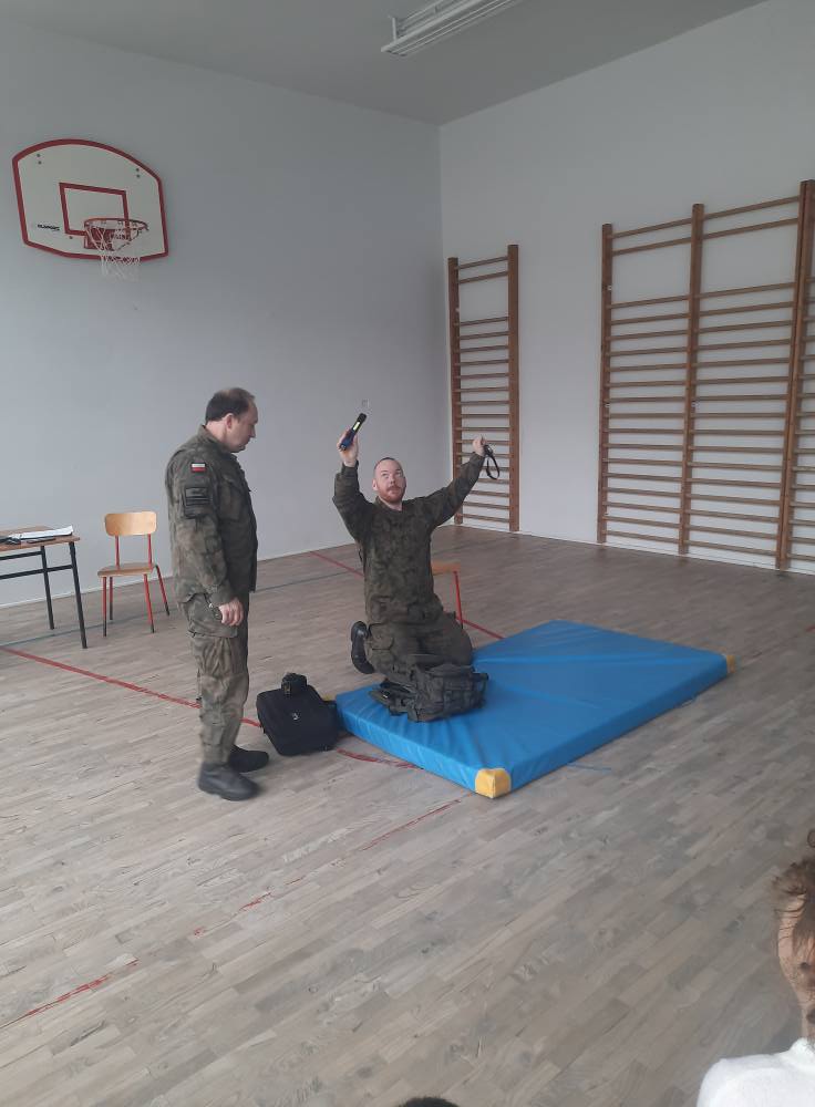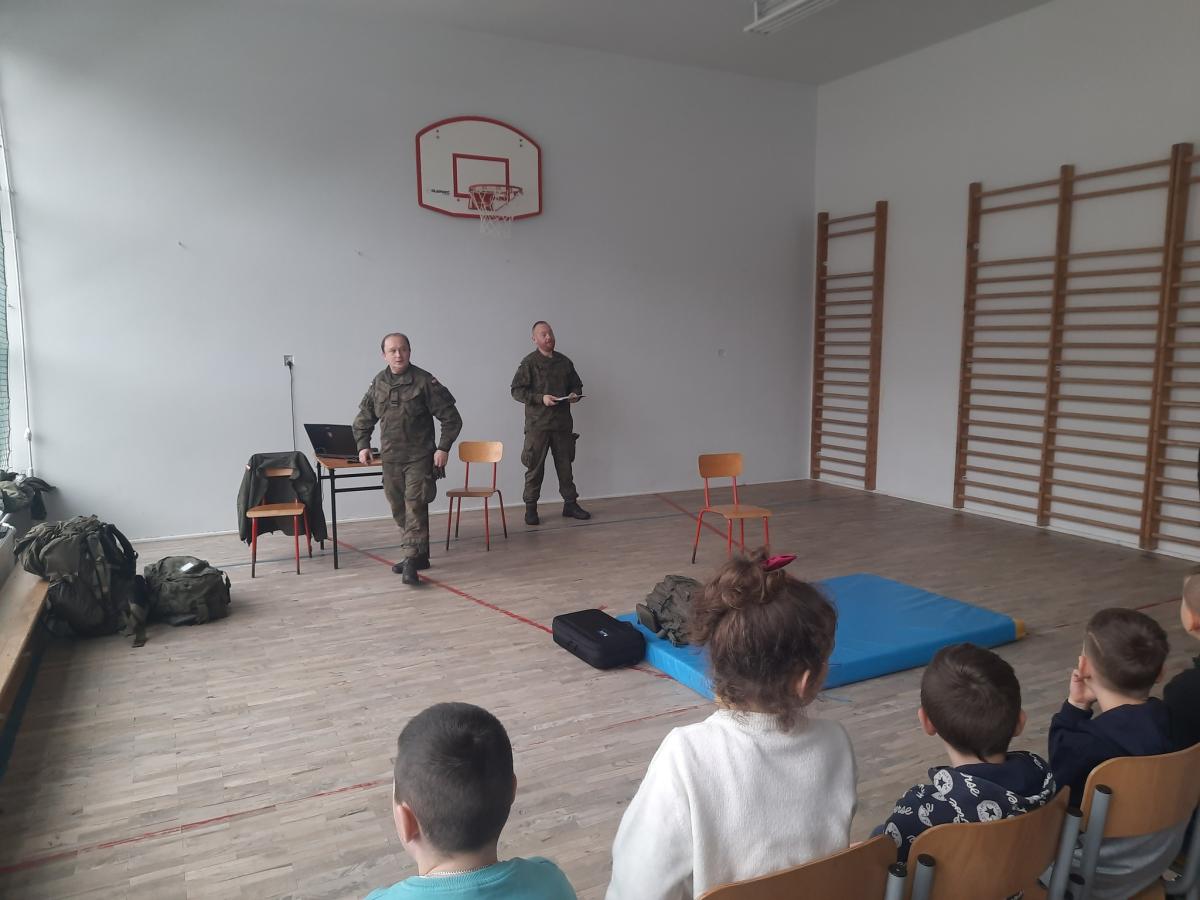 W dniu 02.12.2025r. uczniowie klas IV-VIII brali udział w zajęciach prowadzonych przez żołnierzy Wojska Polskiego. Głównym celem programu jest podniesienie świadomości dzieci i młodzieży w obszarze bezpieczeństwa i obronności. Spotkanie miało również na celu kształtowanie podstawowych umiejętności z zakresu obrony i ochrony, a także odpowiednich zachowań w sytuacjach kryzysowych.