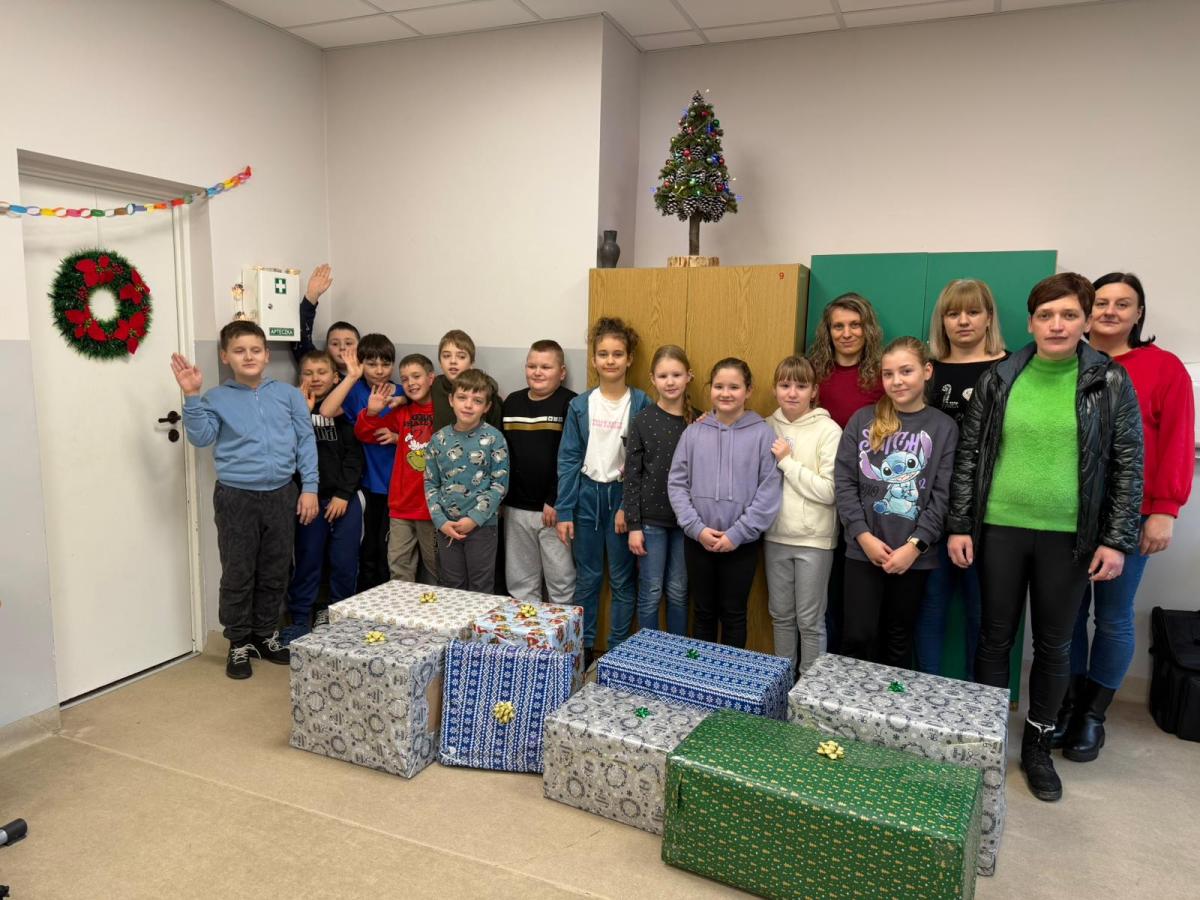 Podczas zajęć z wychowawcą cała klasa, przy ogromnym wsparciu rodziców, wspólnie kompletowała i przygotowywała podarunki. Uczniowie starannie ozdobili paczki, dbając o to, by nie tylko zaspokoić potrzeby rodziny, lecz także sprawić jej radość i dać poczucie, że ktoś o niej pamięta.