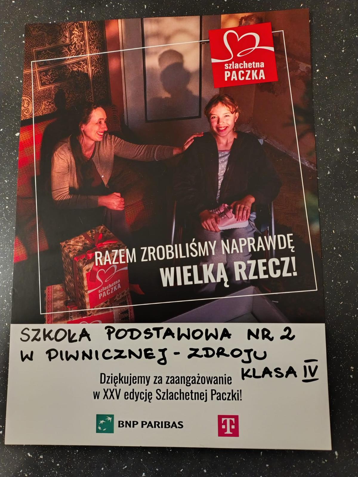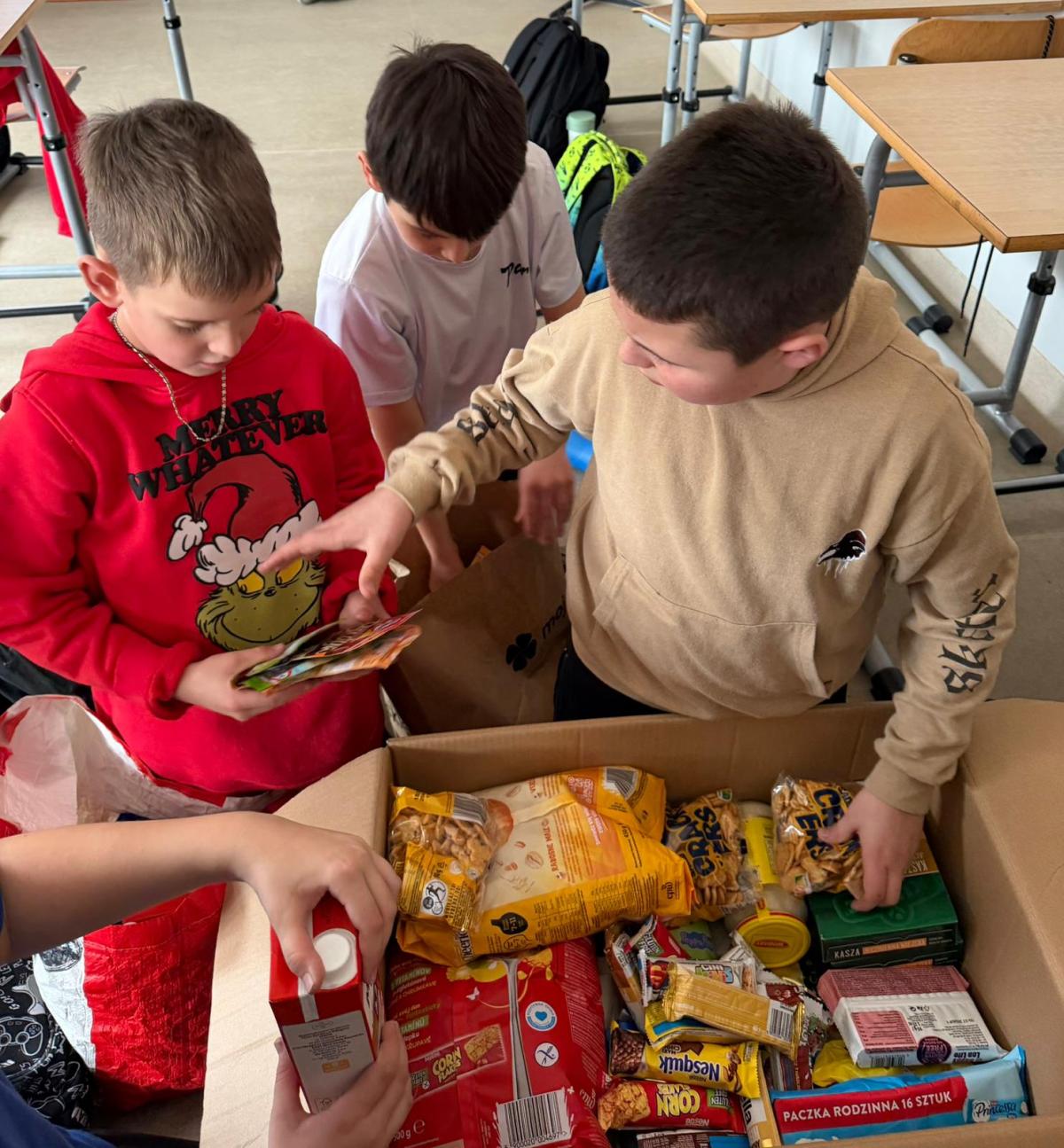 W tym roku szkolnym klasa 4 postanowiła włączyć się w ogólnopolską akcję charytatywną Szlachetna Paczka. Rodzice wraz z uczniami z ogromnym entuzjazmem zdecydowali się pomóc pani Joannie oraz jej dzieciom – sześcioletniej Janince i czteroletniemu Antosiowi – którzy znaleźli się w trudnej sytuacji życiowej.