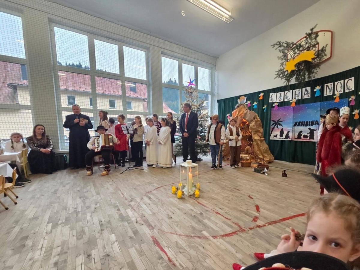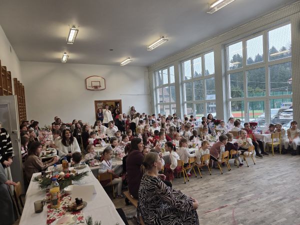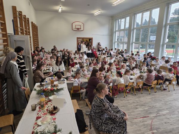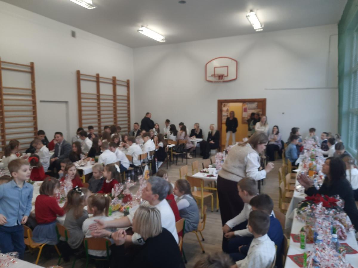 Dnia 19.12.2025r. cała społeczność szkolna zgromadziła się w jednym miejscu, aby wspólnie przeżywać szkolną wigilię .