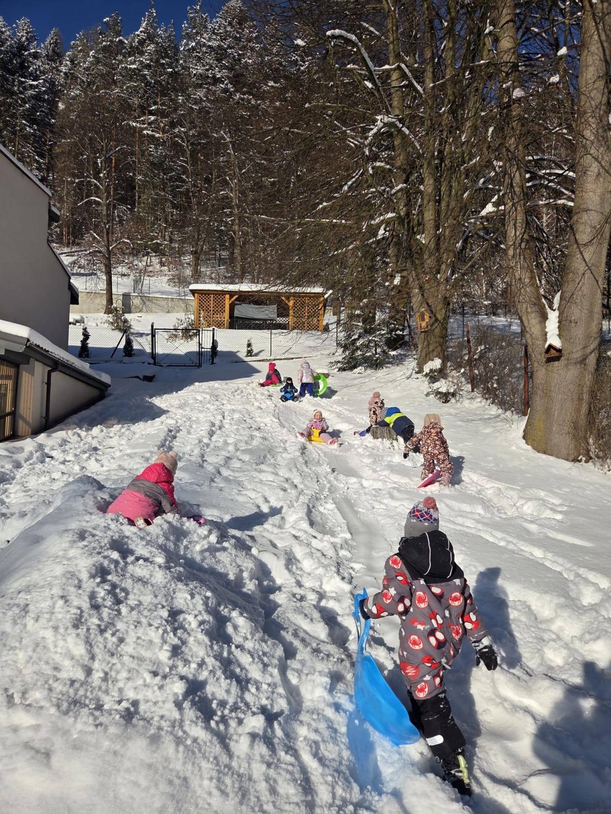 Drukuj Powrót do poprzedniej strony Zabawy na śniegu. 16.01.2026 20:15 Treść Zabawy na świeżym powietrzu, bitwa na śnieżki, berek i zjazdy z górki. Przedszkolaki korzystają z zimowej aury .