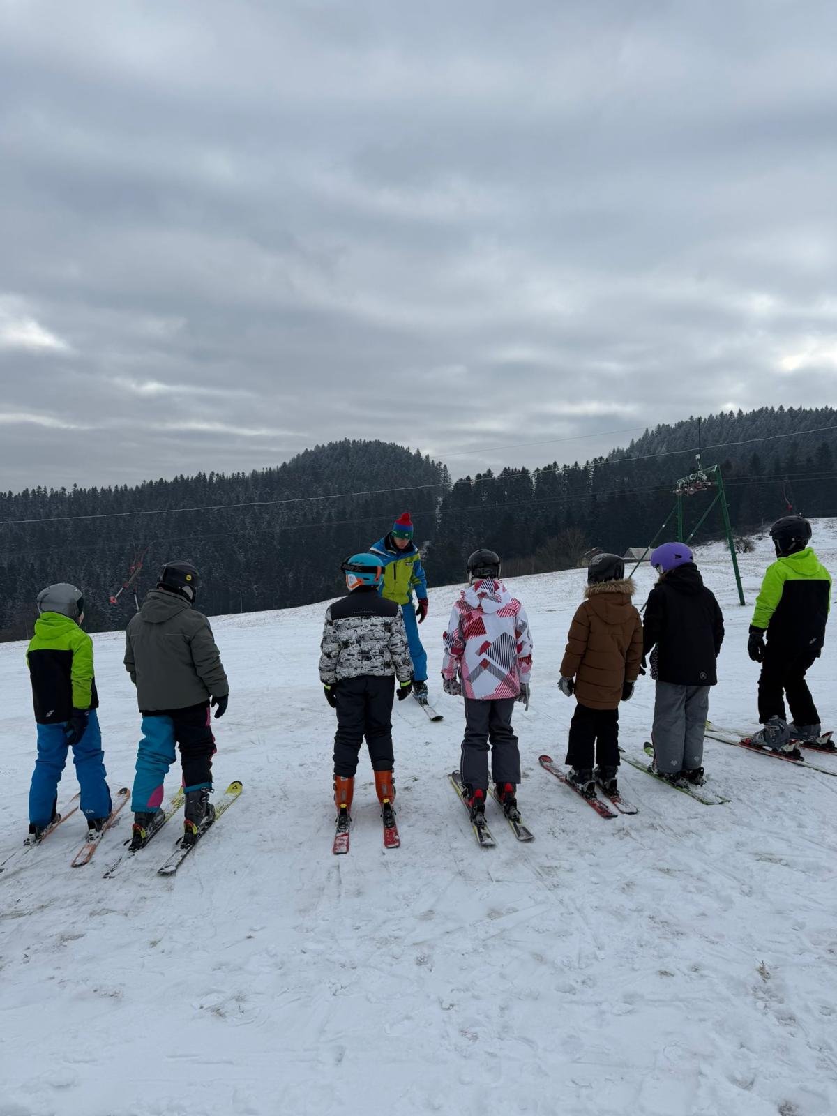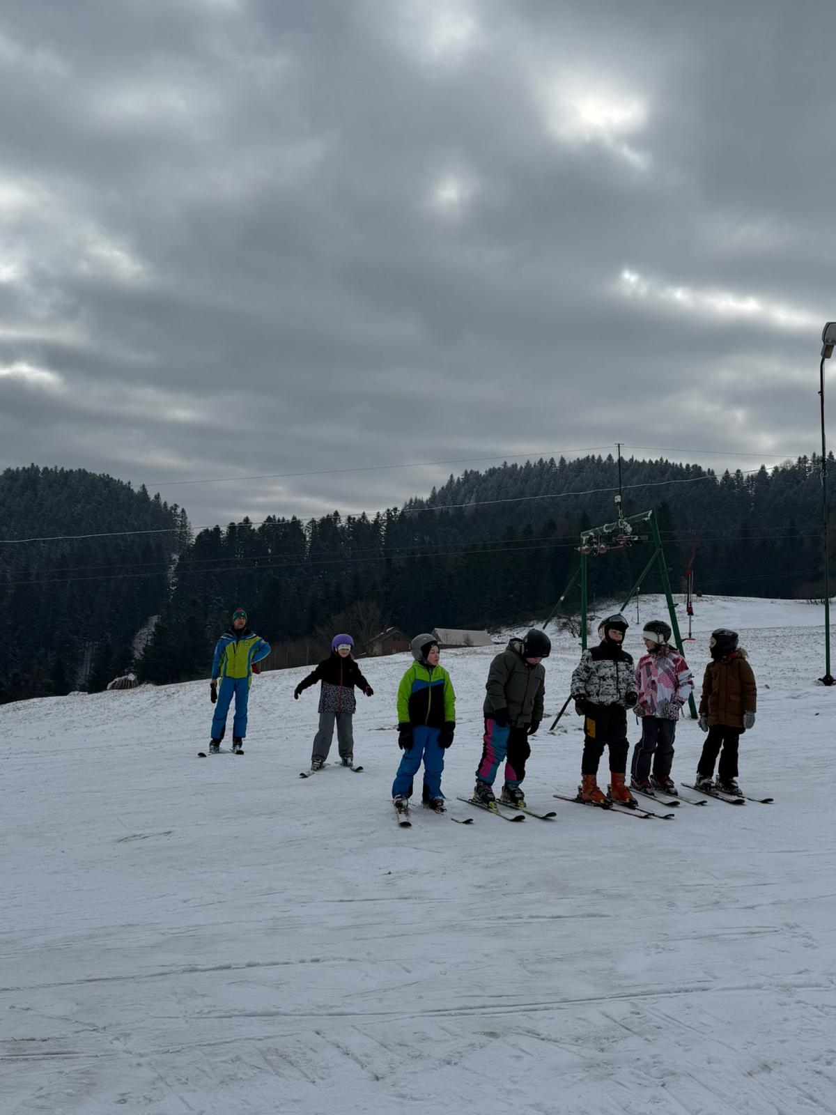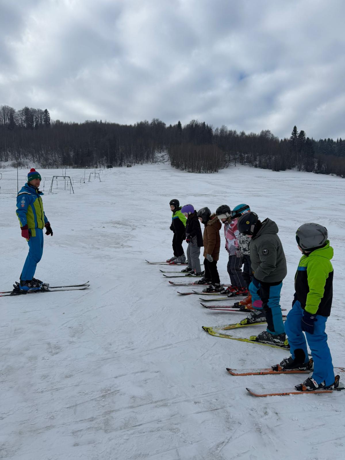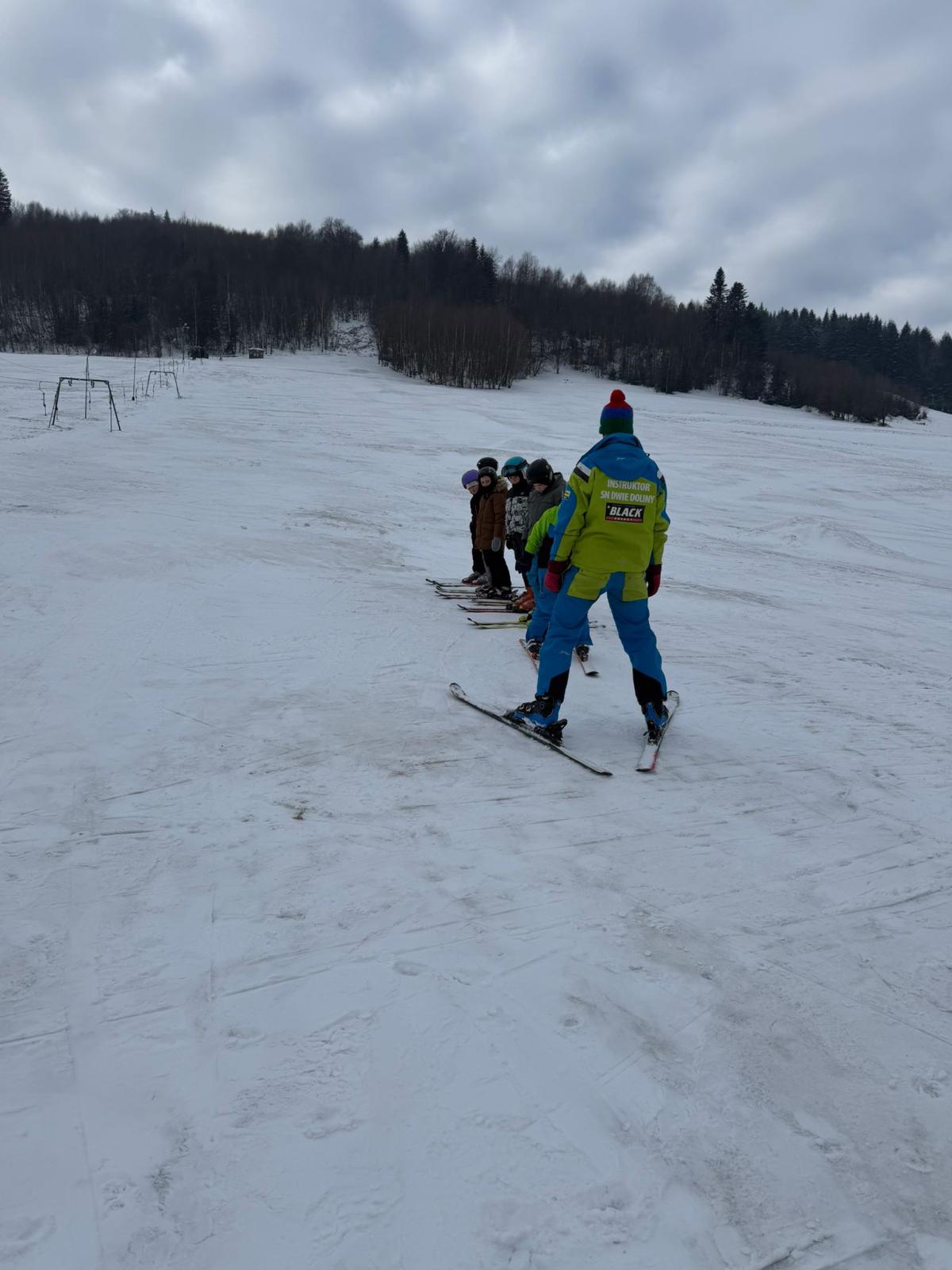 Uczniowie klasy czwartej wzięli udział w nauce jazdy na stoku narciarskim - Sucha Dolina. Wyjazd był doskonałą okazją do aktywnego spędzenia czasu na świeżym powietrzu oraz nauki nowych umiejętności. Dla wielu uczestników był to pierwszy kontakt z narciarstwem. Pod okiem pana Filipa Malika uczniowie poznawali podstawy jazdy – prawidłową postawę, technikę hamowania oraz wykonywanie pierwszych skrętów. Choć początki bywały trudne, nie brakowało determinacji i wzajemnego wsparcia. Z każdą minutą widać było wyraźne postępy, a pod koniec wyprawy większość uczniów potrafiła samodzielnie zjechać z łagodnego stoku. Po sportowych emocjach na uczestników czekało wspólne pieczenie kiełbasek. Był to czas odpoczynku, rozmów i dzielenia się wrażeniami z pierwszych narciarskich doświadczeń. Ciepła herbata i pieczone kiełbaski smakowały wyjątkowo po intensywnym dniu na śniegu. Wyjazd nie odbyłby się bez wsparcia rodziców, którzy zapewnili transport oraz aktywnie włączyli się w opiekę nad uczniami. Dzięki ich zaangażowaniu wydarzenie przebiegło sprawnie i bezpiecznie. Wyprawa ta była nie tylko lekcją sportu, ale także okazją do integracji i budowania relacji. Uczniowie wrócili zmęczeni, ale pełni radości i nowych doświadczeń.
