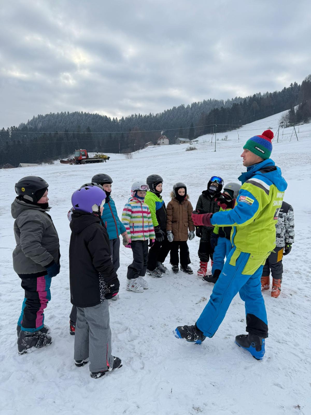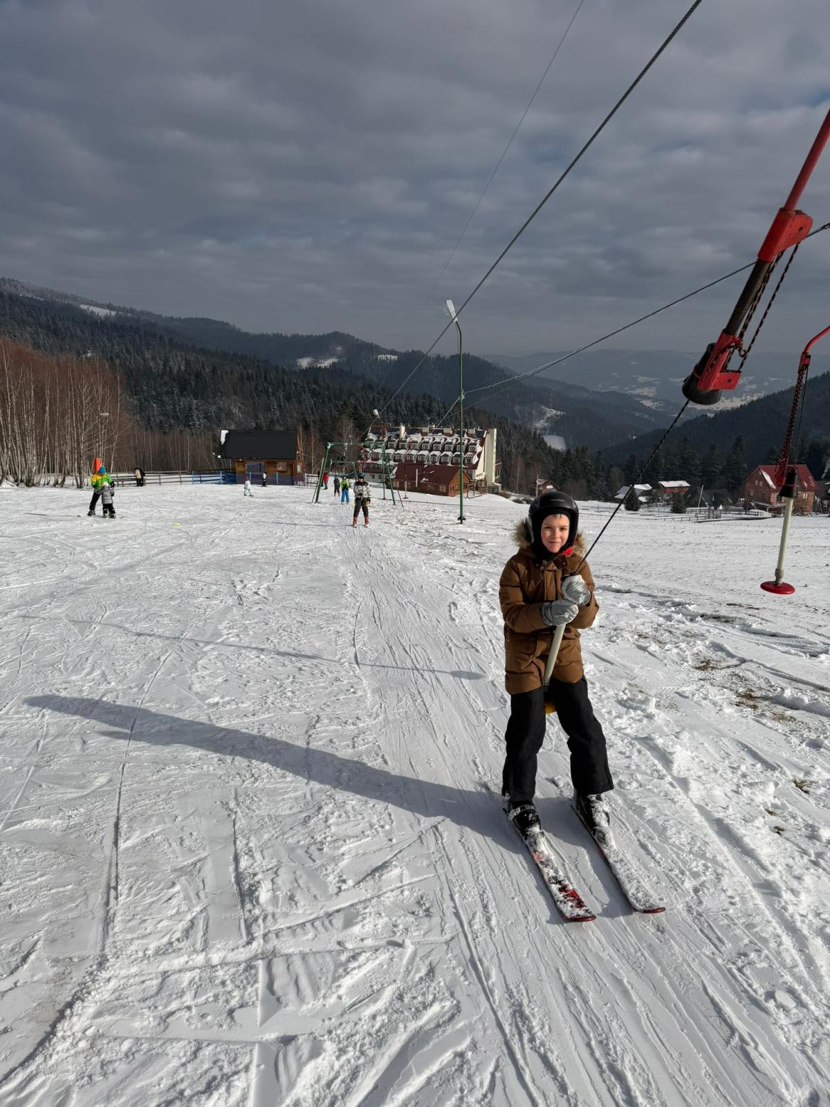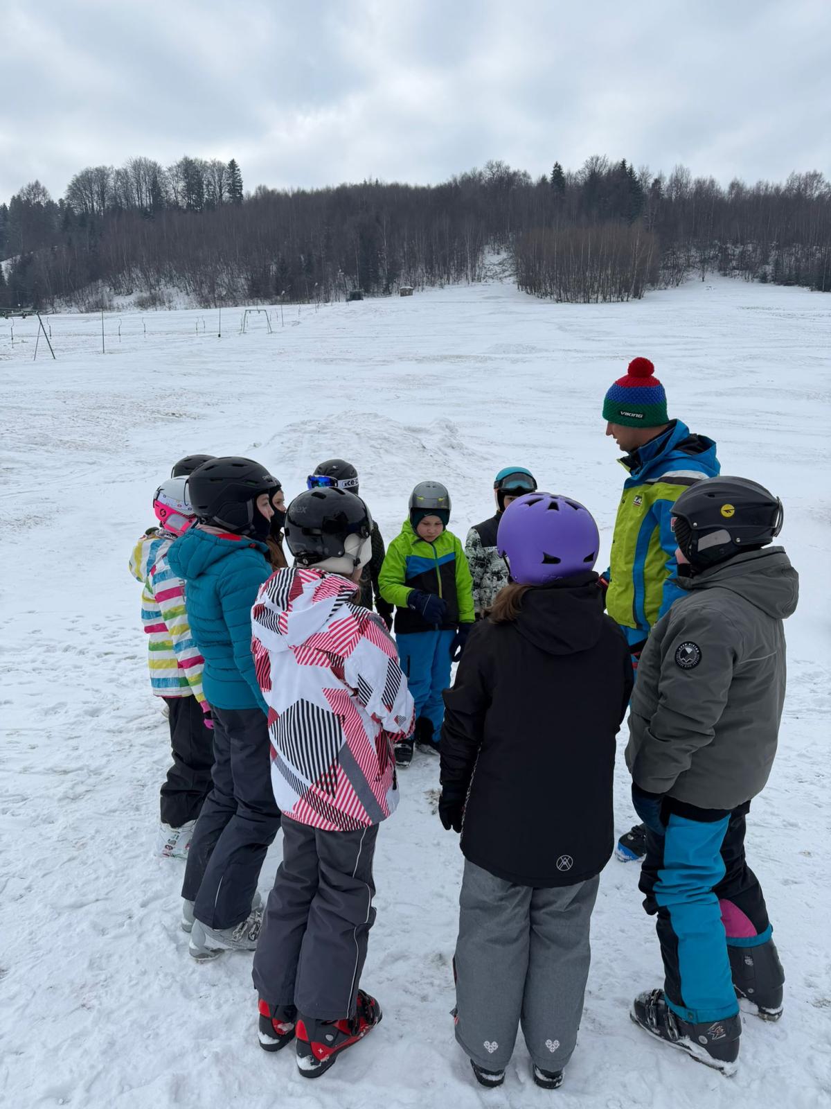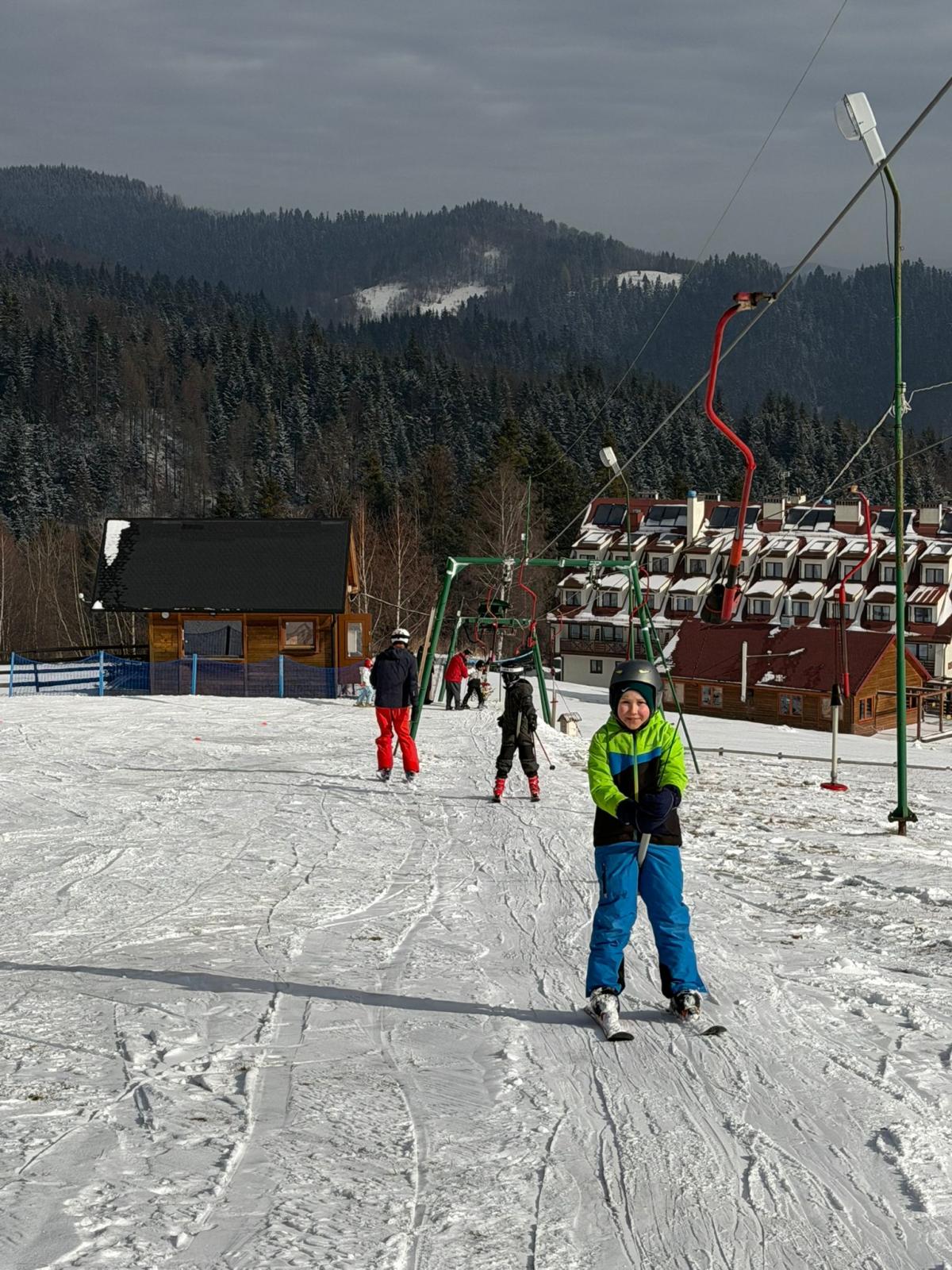 Uczniowie klasy czwartej wzięli udział w nauce jazdy na stoku narciarskim - Sucha Dolina. Wyjazd był doskonałą okazją do aktywnego spędzenia czasu na świeżym powietrzu oraz nauki nowych umiejętności. Dla wielu uczestników był to pierwszy kontakt z narciarstwem. Pod okiem pana Filipa Malika uczniowie poznawali podstawy jazdy – prawidłową postawę, technikę hamowania oraz wykonywanie pierwszych skrętów. Choć początki bywały trudne, nie brakowało determinacji i wzajemnego wsparcia. Z każdą minutą widać było wyraźne postępy, a pod koniec wyprawy większość uczniów potrafiła samodzielnie zjechać z łagodnego stoku. Po sportowych emocjach na uczestników czekało wspólne pieczenie kiełbasek. Był to czas odpoczynku, rozmów i dzielenia się wrażeniami z pierwszych narciarskich doświadczeń. Ciepła herbata i pieczone kiełbaski smakowały wyjątkowo po intensywnym dniu na śniegu. Wyjazd nie odbyłby się bez wsparcia rodziców, którzy zapewnili transport oraz aktywnie włączyli się w opiekę nad uczniami. Dzięki ich zaangażowaniu wydarzenie przebiegło sprawnie i bezpiecznie. Wyprawa ta była nie tylko lekcją sportu, ale także okazją do integracji i budowania relacji. Uczniowie wrócili zmęczeni, ale pełni radości i nowych doświadczeń.