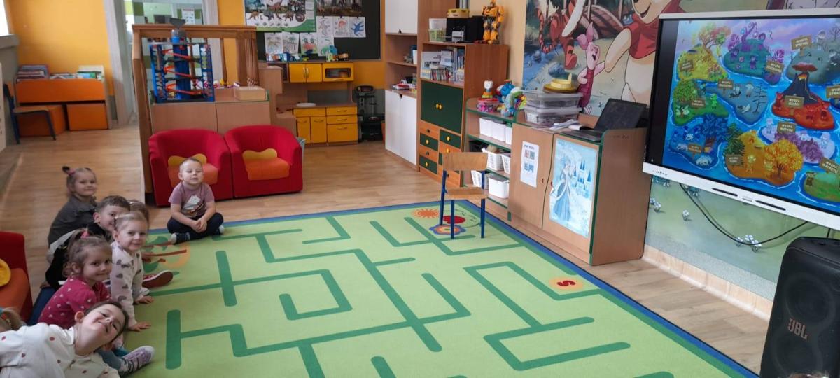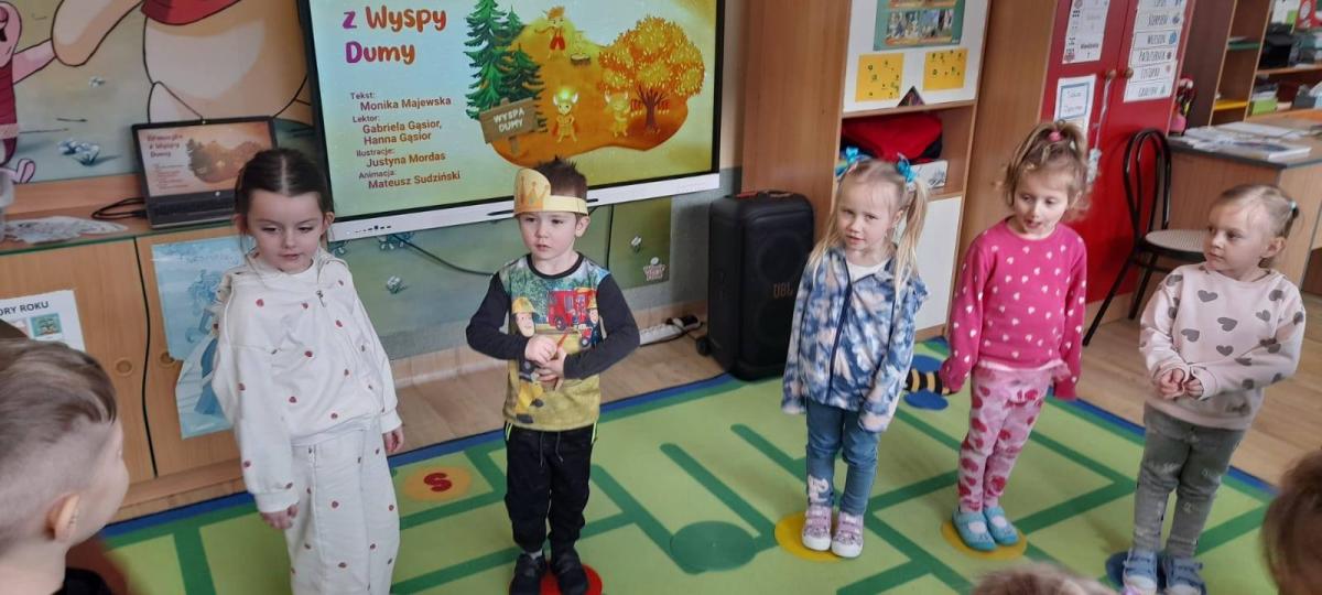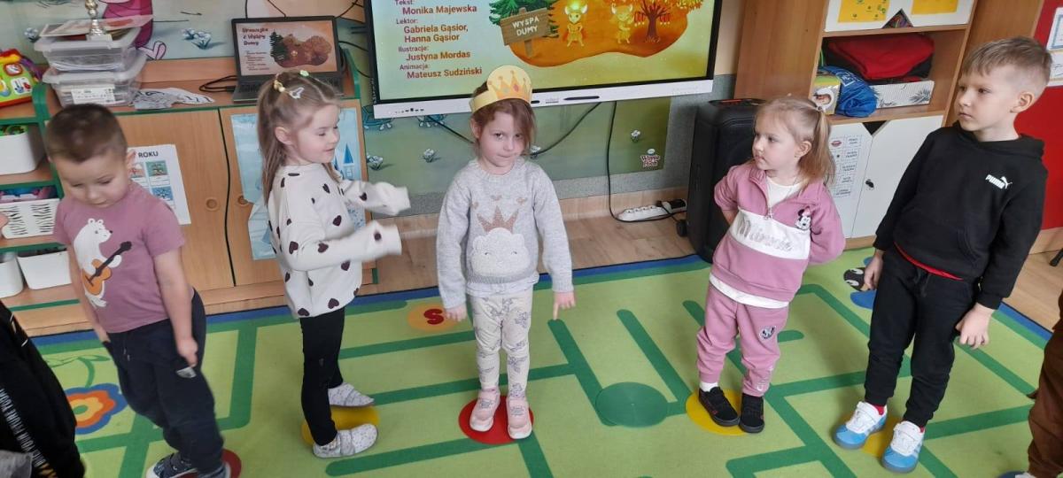Dzieci obejrzały animację do bajki, pt.,,Brawojka z Wyspy Dumy", a następnie uczestniczyły w zabawie integracyjnej - ,,Złota korona" .